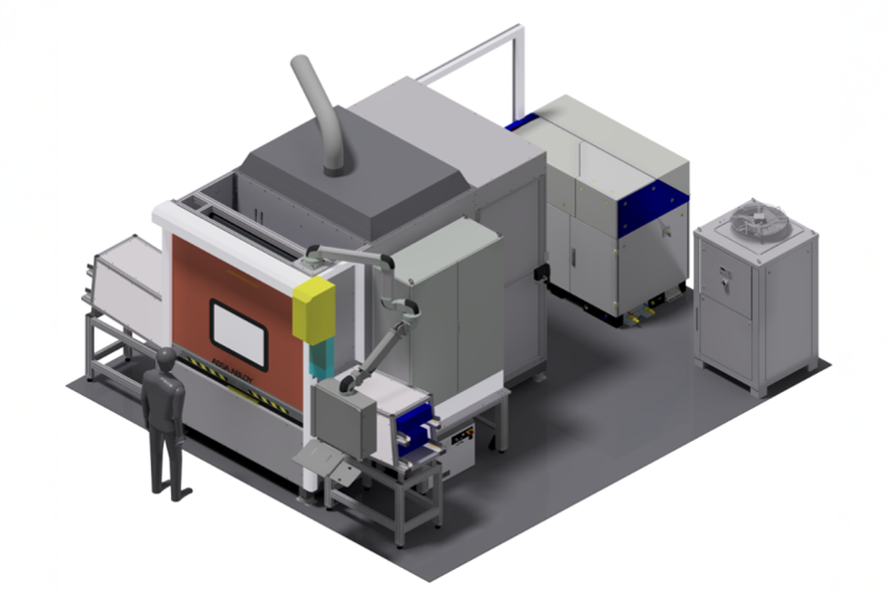 Die Zuführung der Bauteile in die Arbeitszelle erfolgt bei unseren Anlagen vollautomatisch.